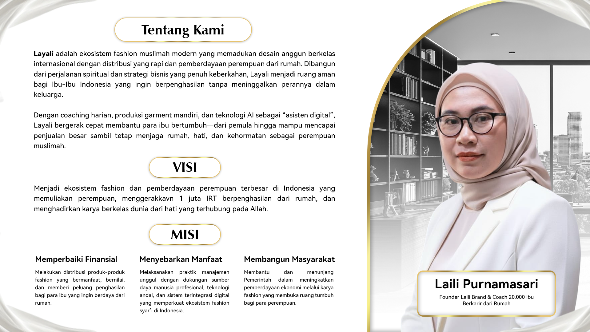 ekosistem fashion muslimah modern yang menggabungkan desain berkelas internasional, sistem distribusi berskala nasional, dan pemberdayaan perempuan dari rumah.